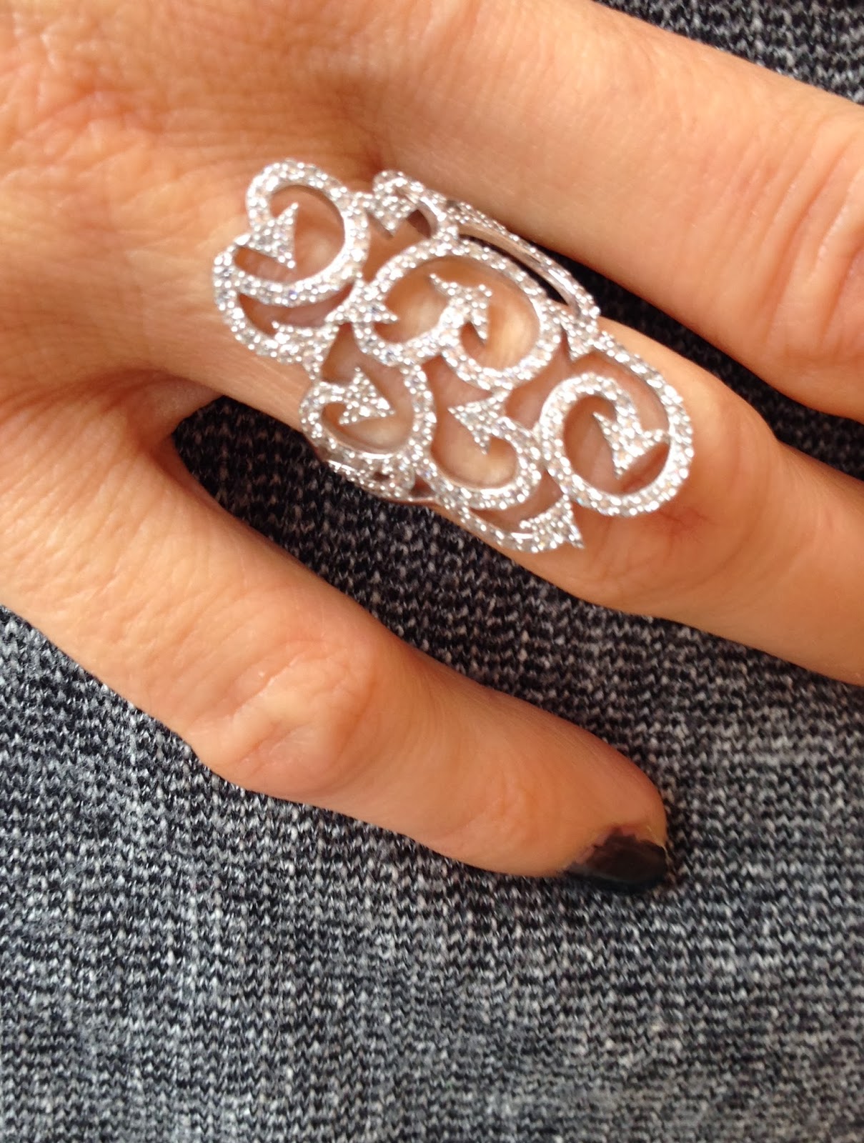poi ho scelto degli accessori scintillanti! anello in argento e zirconi, orologio con strass e cinturino in silicone, collana stile vintage in metallo invecchiato e strass……magnifica!