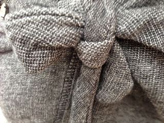 felpa lunga sale e pepe, modello a uovo con scollo a cratere, motivo di fiocco vicino allo scollo, tasche