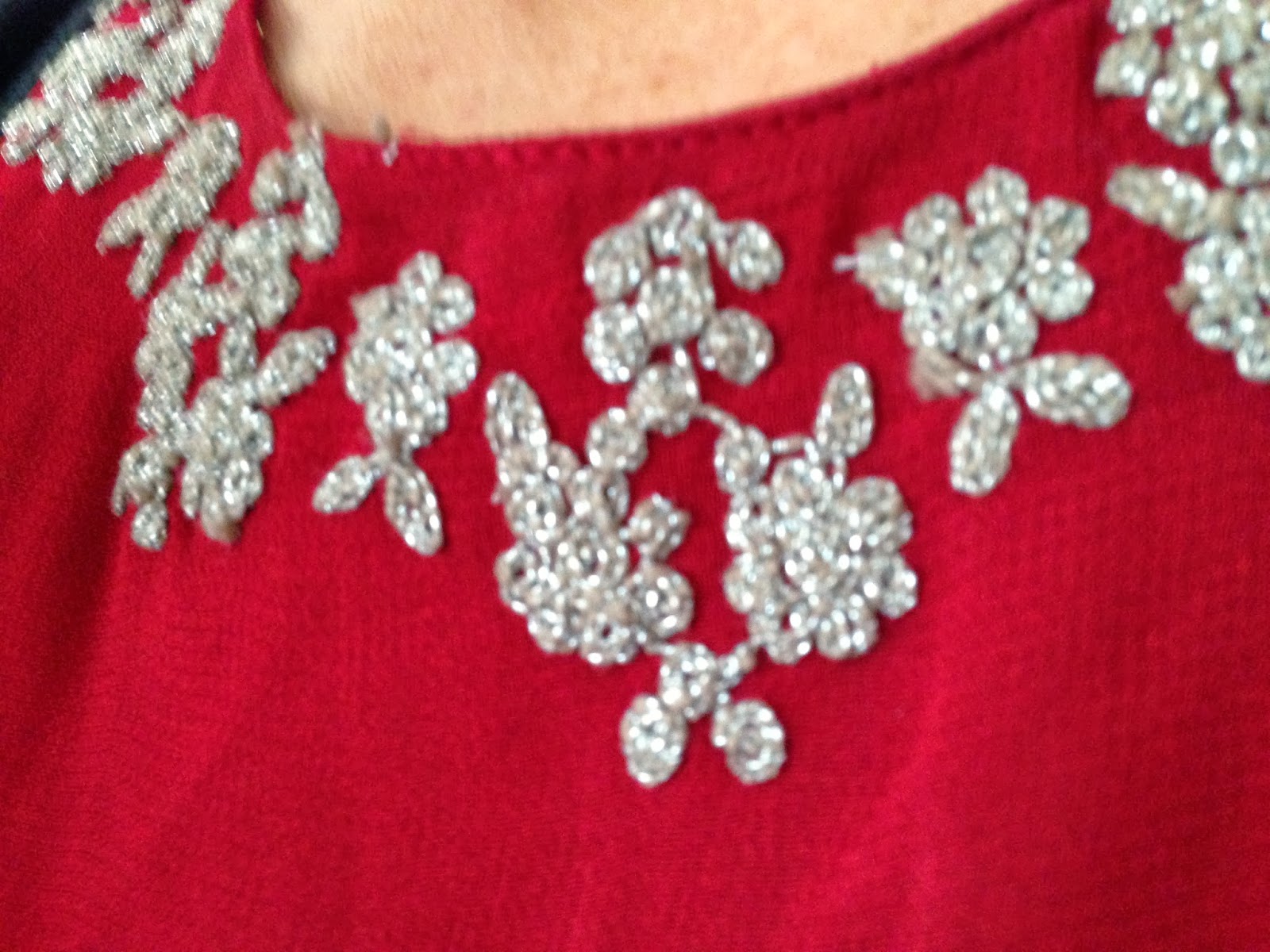 Blusa senza maniche in chiffon rosso con ricami in lurex argento intorno allo scollo;
