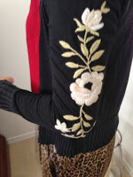 cardigan nero con ricamo floreale sulla manica sinistra;