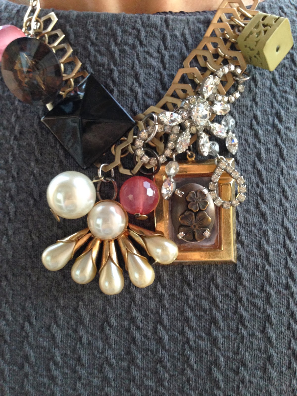 ed una collana originale, composta da materiali scovati nei mercatini vintage…..una chicca…….