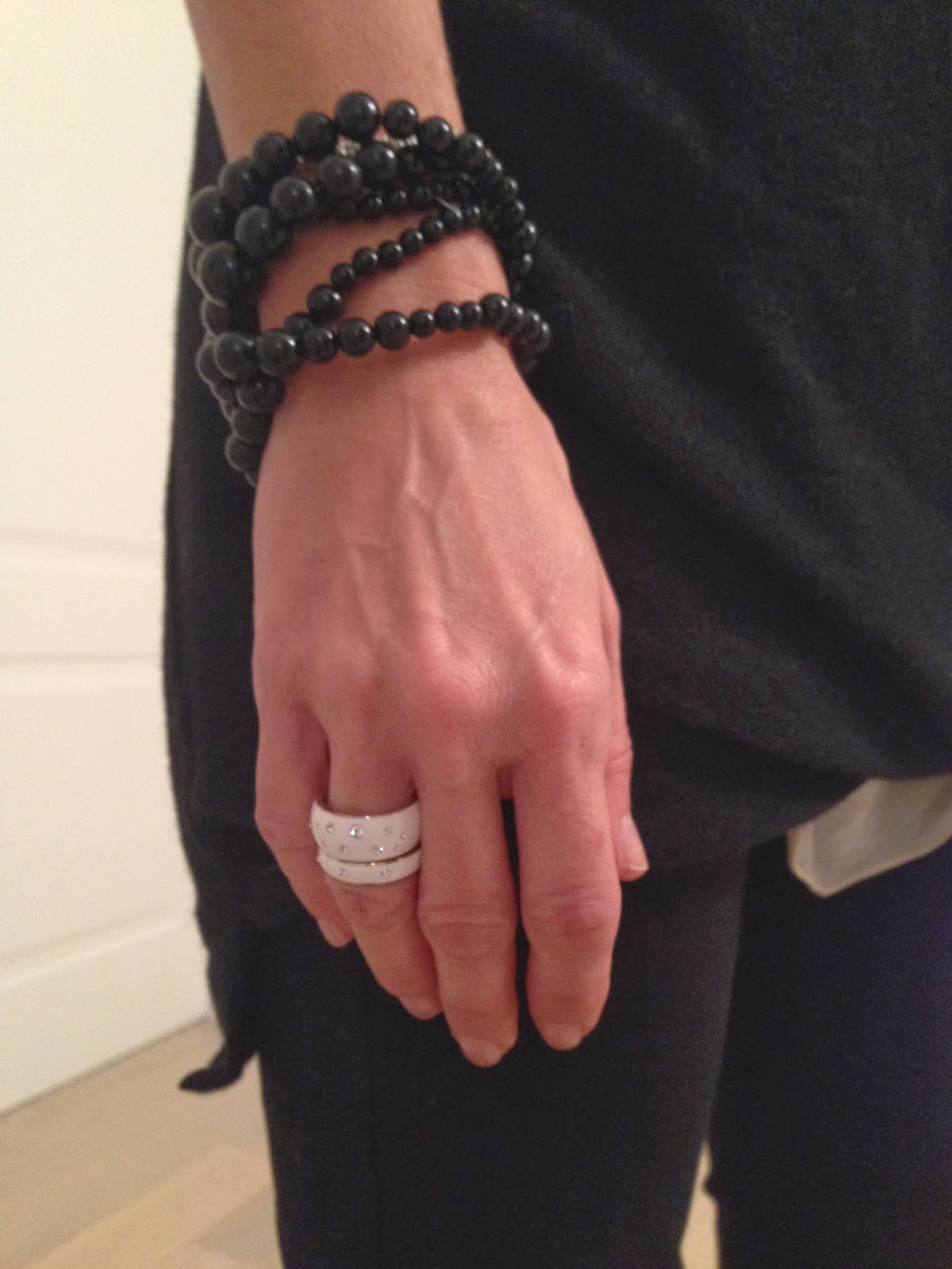 ho poi scelto collana, bracciale e anelli panna o neri abbinati all’oro.