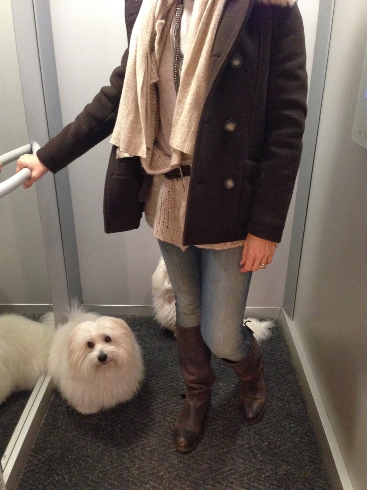 Va come vengono bene le foto in ascensore??? Bellissimo il cardigan!! Mai tuoi cani sono stupendi!!