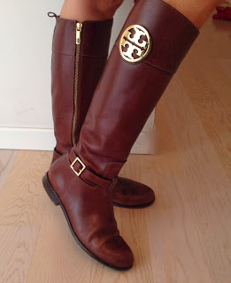 gli stivali in pelle colore cuoio in stile cavallerizza.