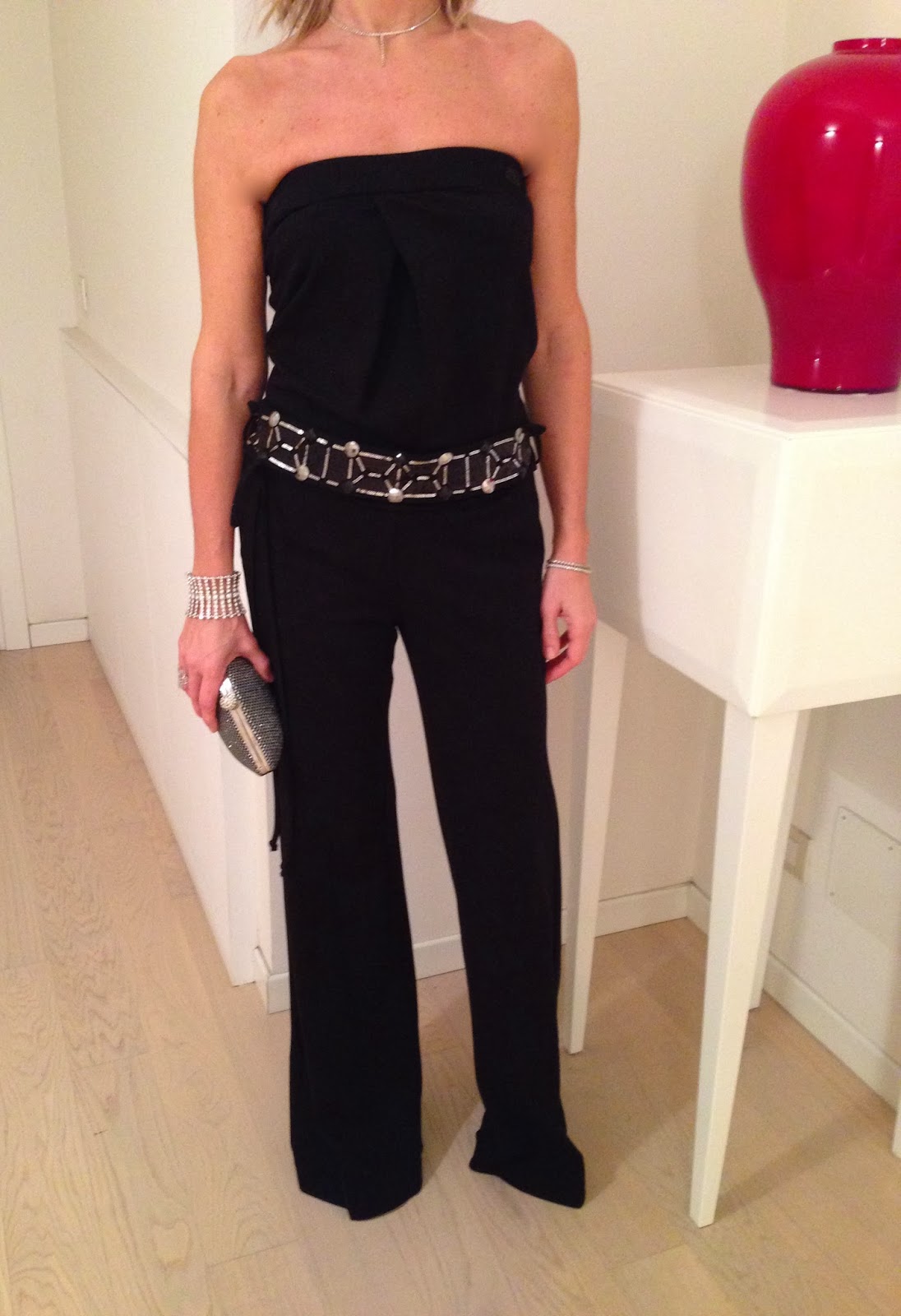 Ma perche' a me le tute stanno malissimo? Lo dico con una certa invidia perche' a me piacerebbe indossare un look come questo! Perfetta anche la cintura gioiello!