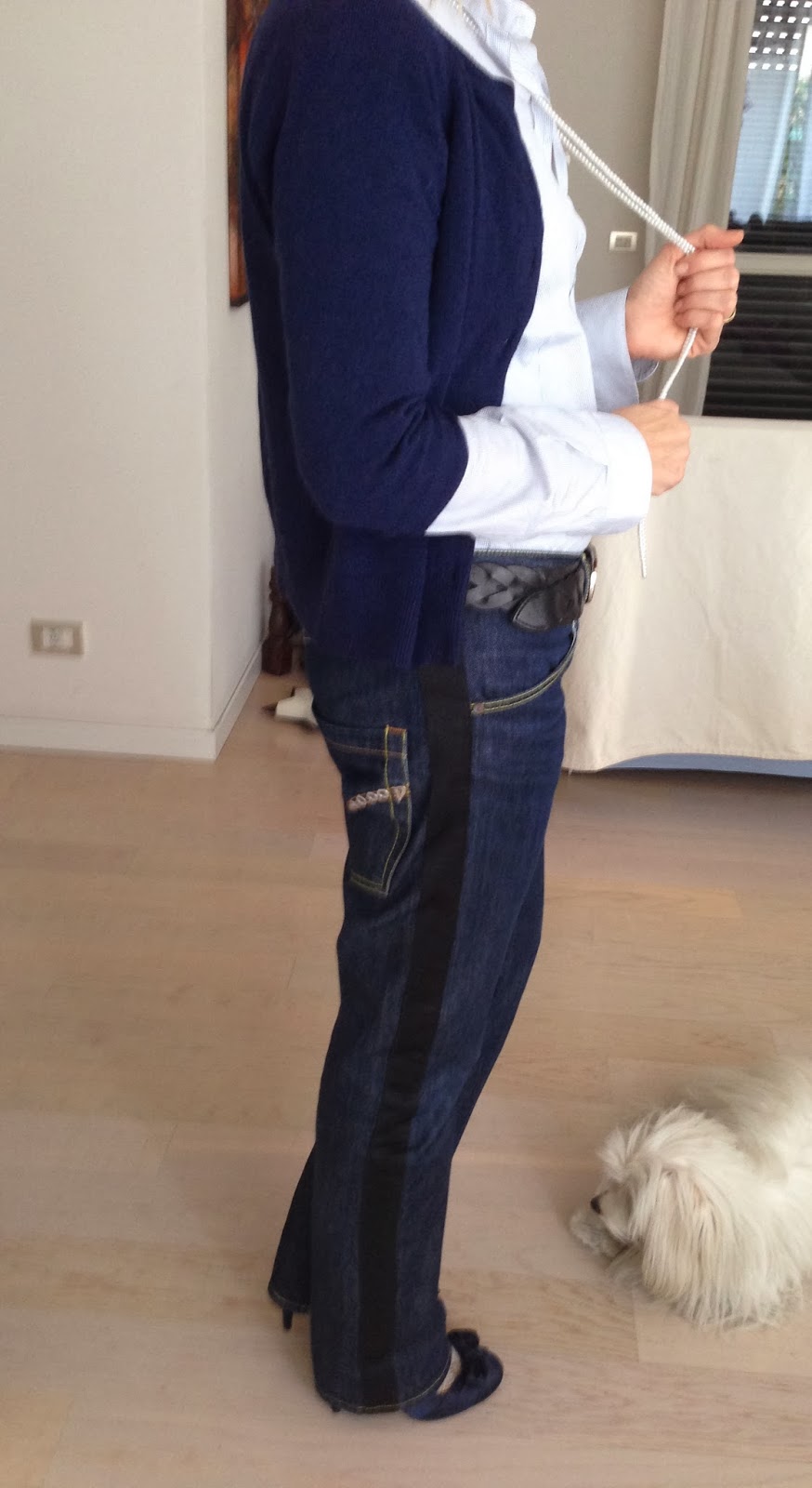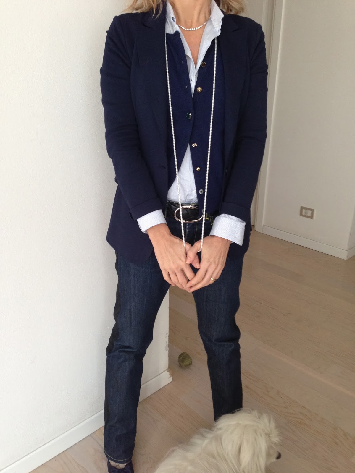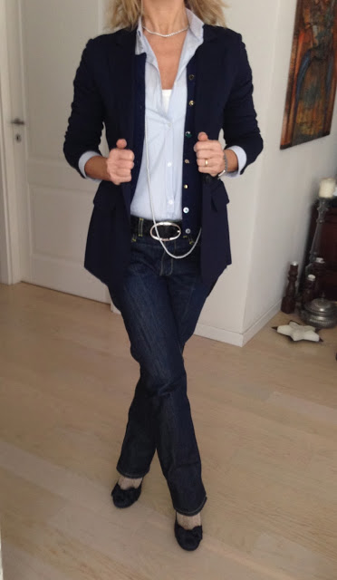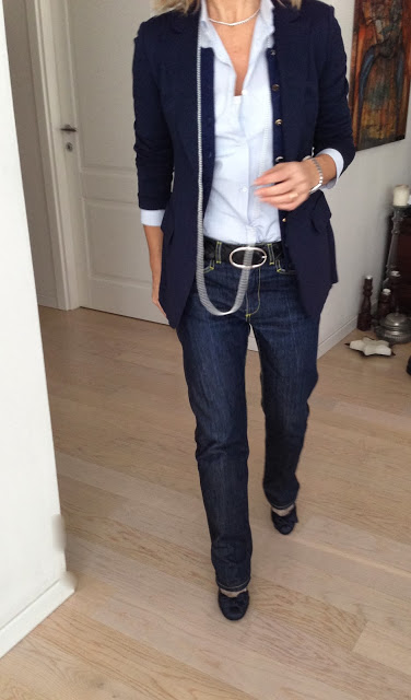 beh come idea di smoking da giorno è perfetta, i jeans così li trovo elegant sai? bella e tres chic!