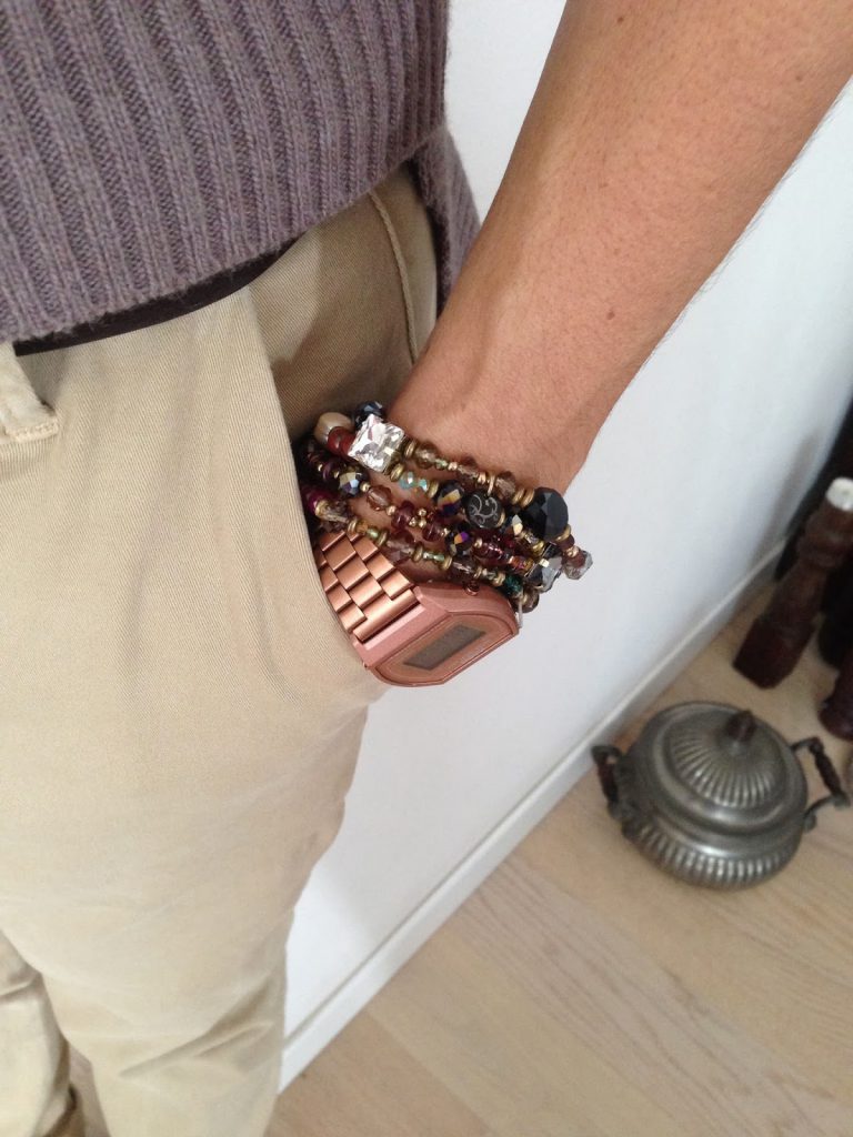 Casio ramato con abbinati bracciali con pietre naturali e strass