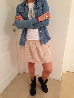 anche questo come l'altro mi piace molto, in particolare il contrasto tra la camicia denim e la gonna romantica!