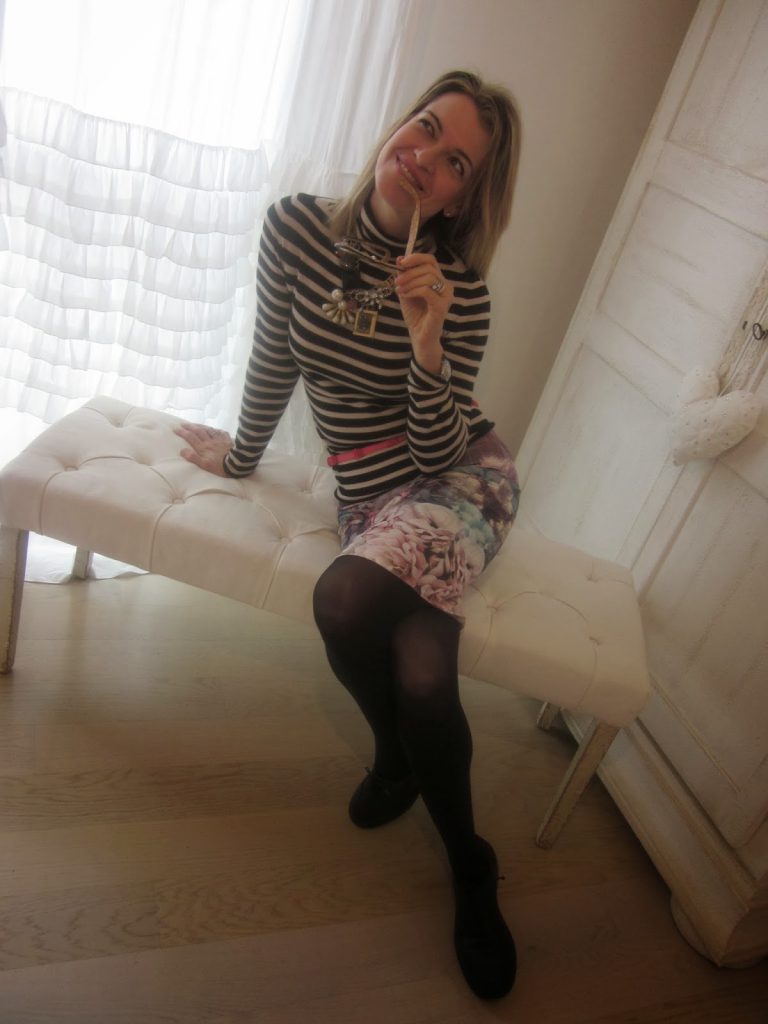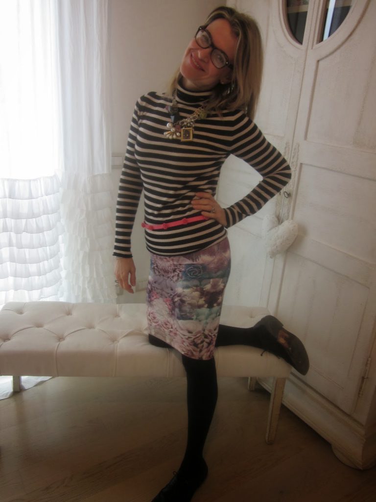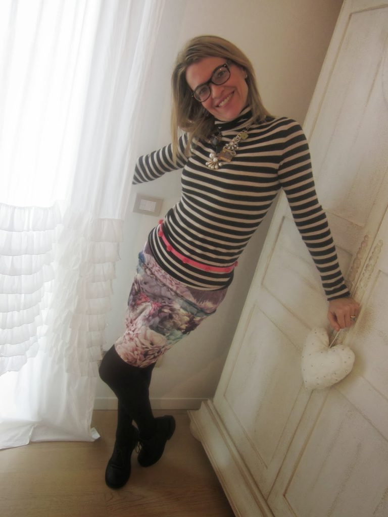 direi meno monotono abbinarla ad una dolcevita rigata!