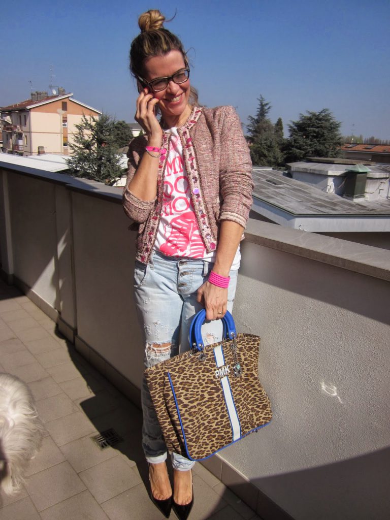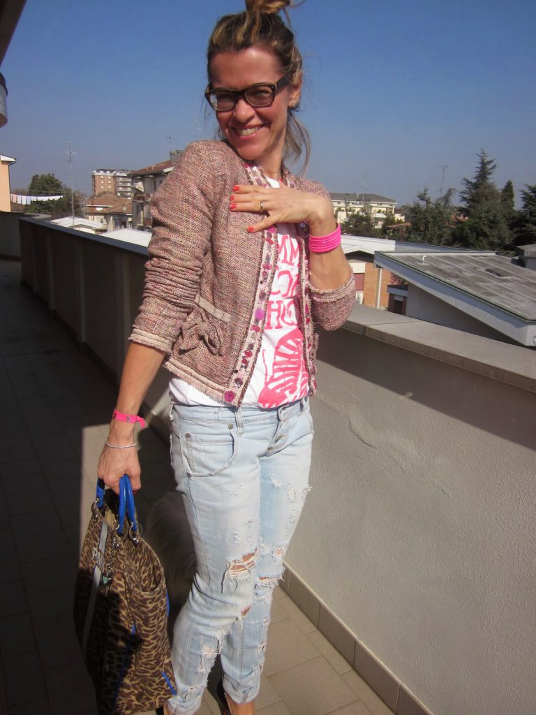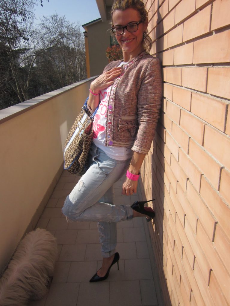 Anch io adoro il rosa a piccoli tocchi per "ravvivare" un outfit.
