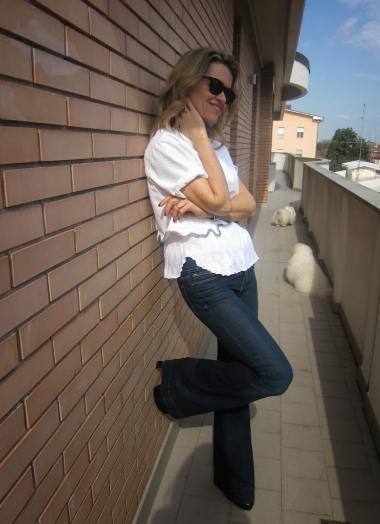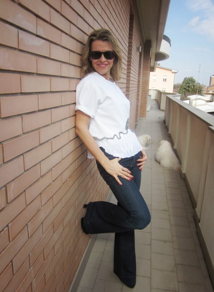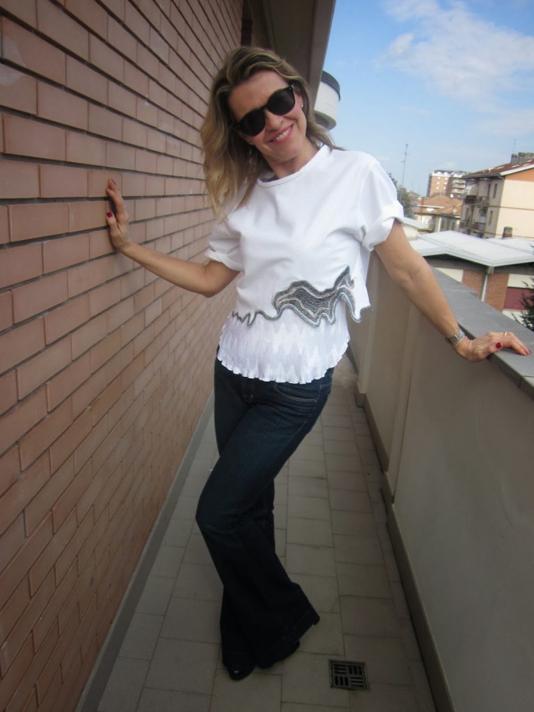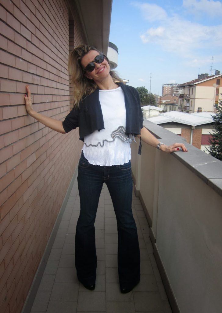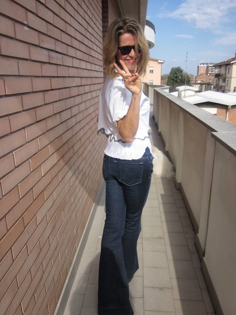 Ma dove li trovi certi capi? quel top è troppo troppo bello e i jeans a zampa ti stanno benissimo 🙂