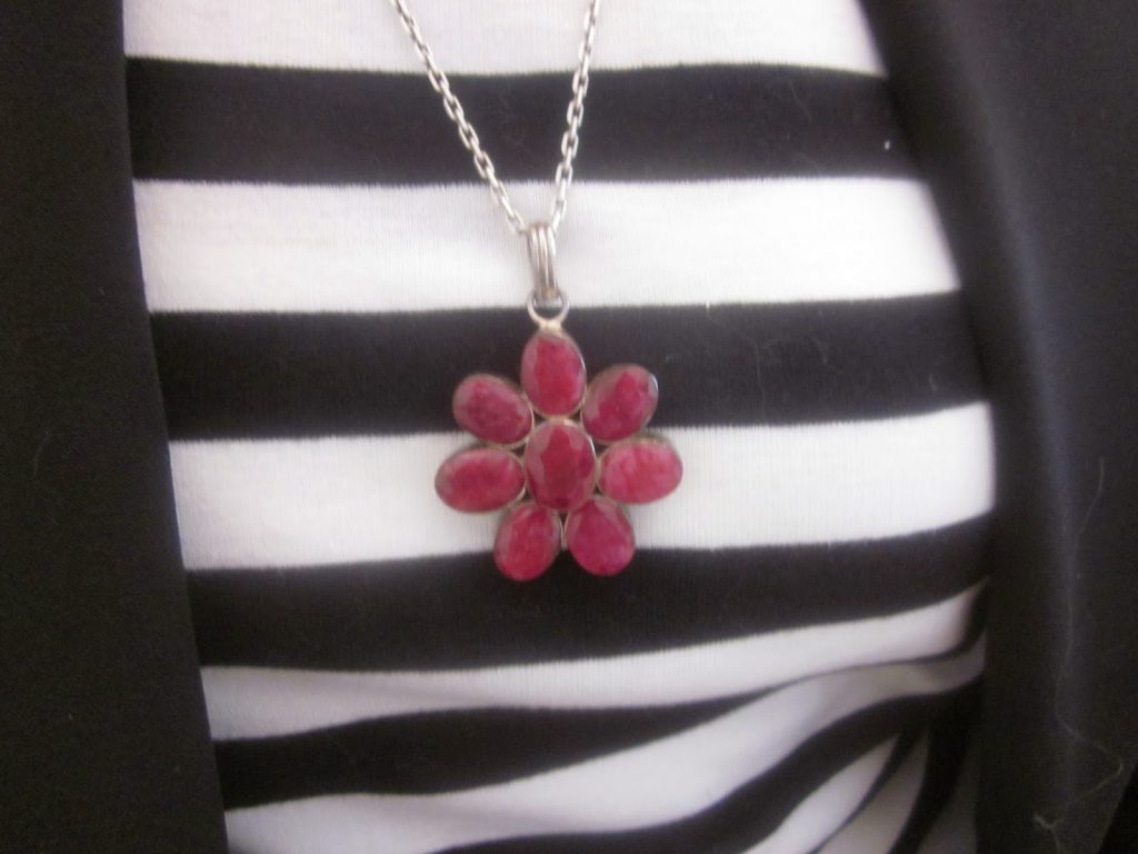 come accessori ho scelto dei bijioux con pietre dure fucsia e