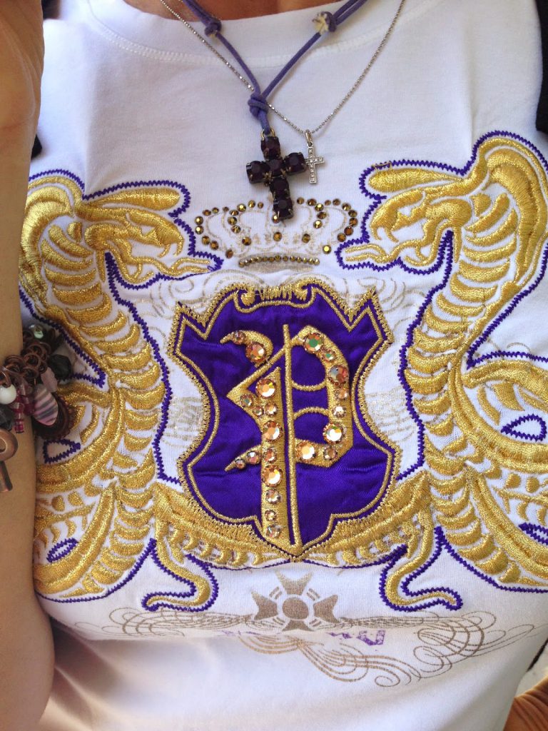 t-shirt con ricami e strass