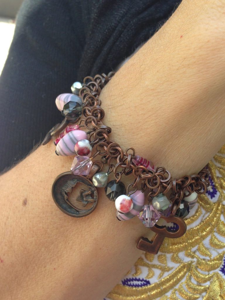 collana e bracciale con ciondoli nella stessa tonalità