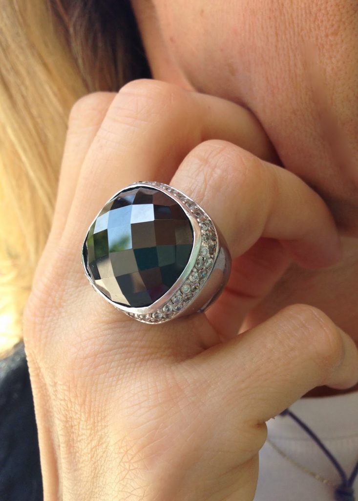 anello importante con agata nera e strass
