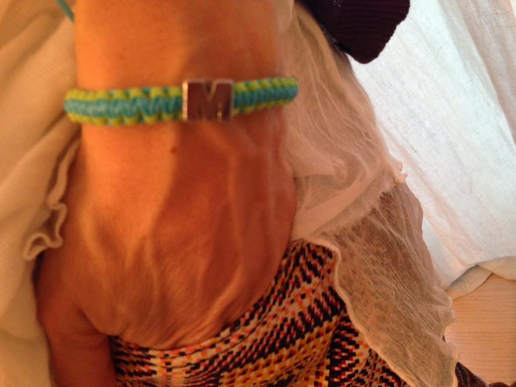 e quello più importante: uno scubidou bicolore con la M di Mamma applicata…..