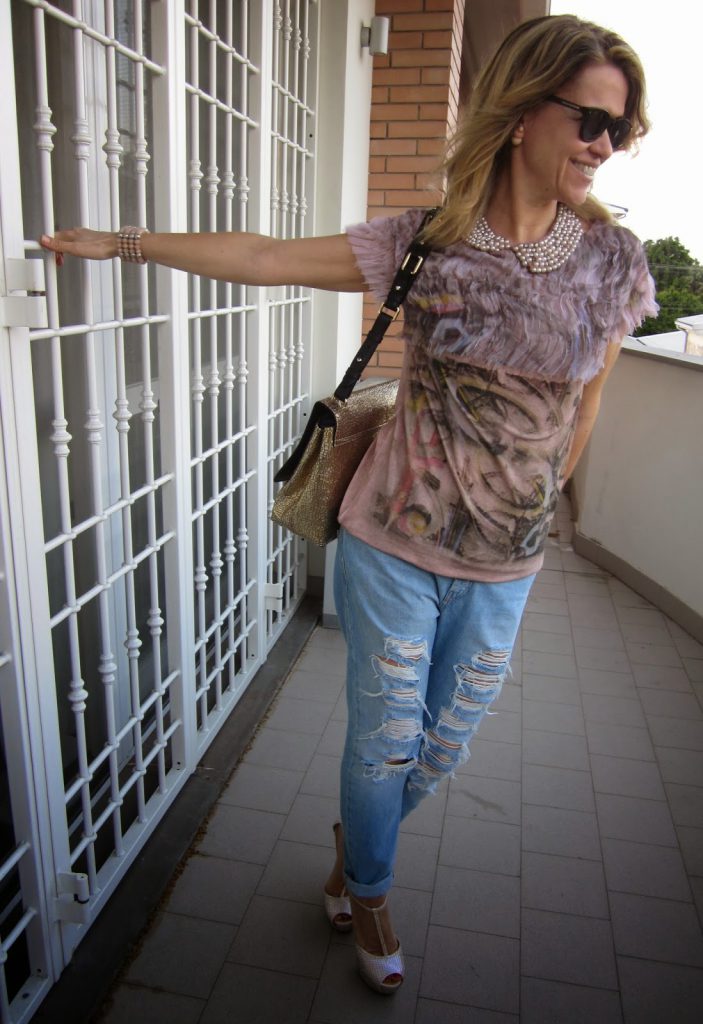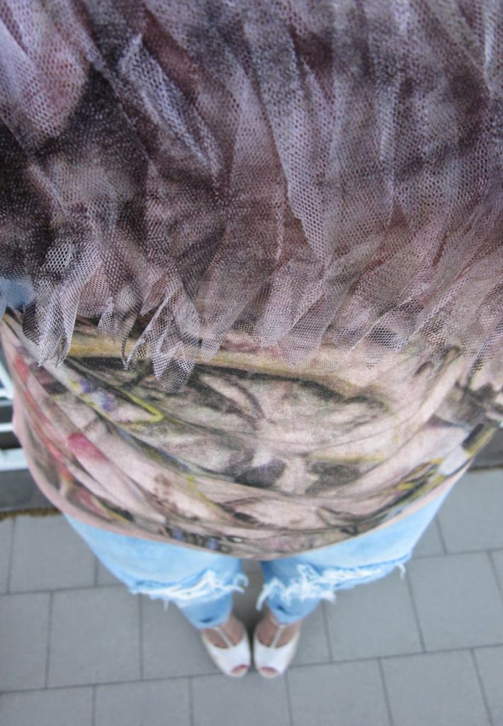 è vero però che la t-shirt è particolare, un insieme di tulle e stampe