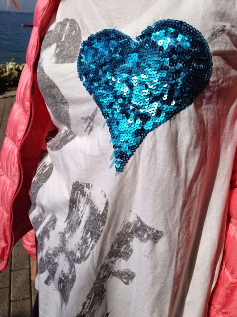 A parte la bellissima location adoro questa tee..il cuore blu pailettoso è bellissimo..