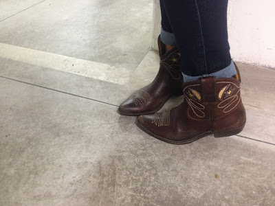 che bello il gilet abbinato ai texani e mi piace il tocco un pò più romantico della blouse, grande Gina!!!