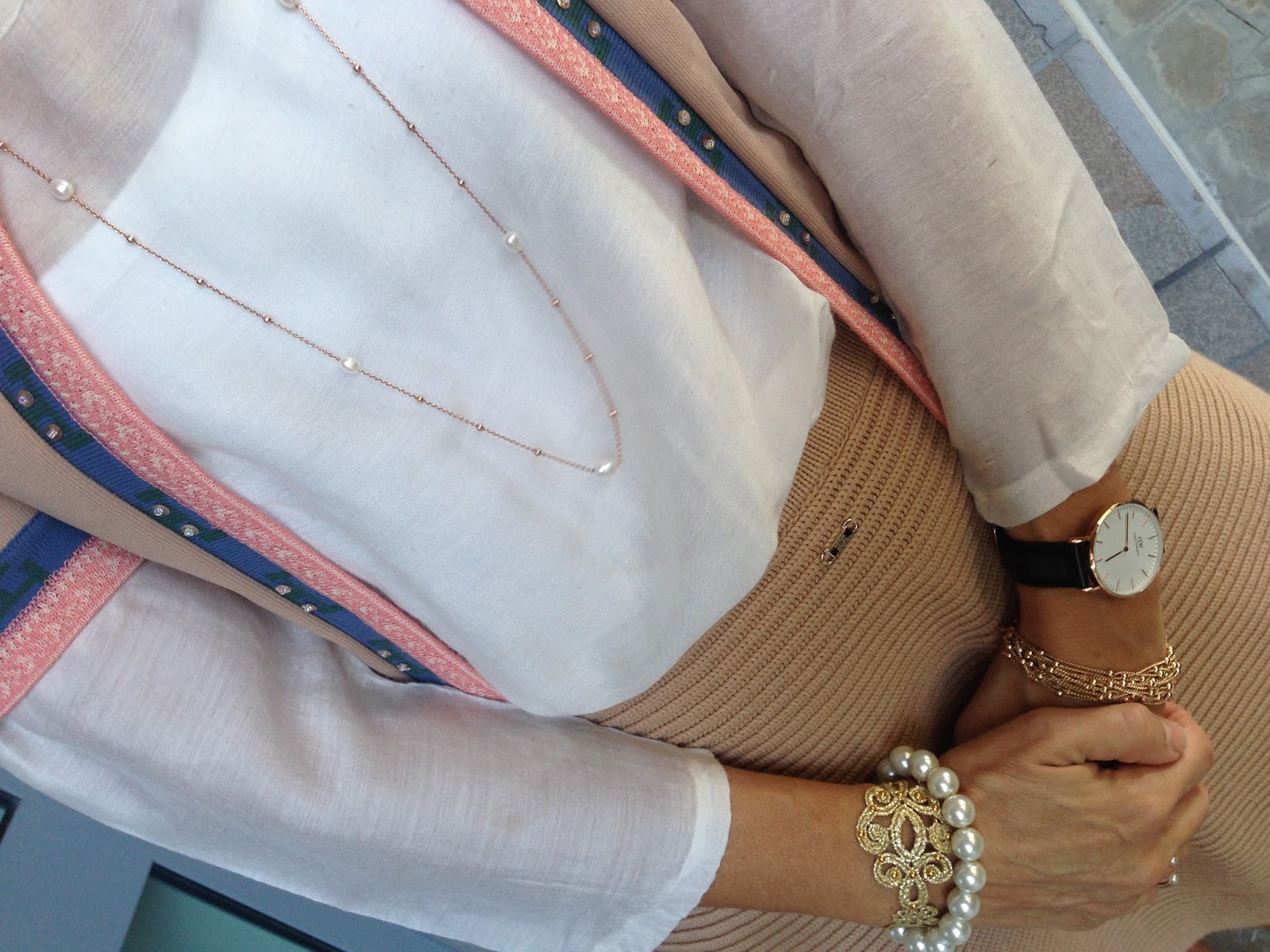 knit jacket + necklace + bracelets : no brand