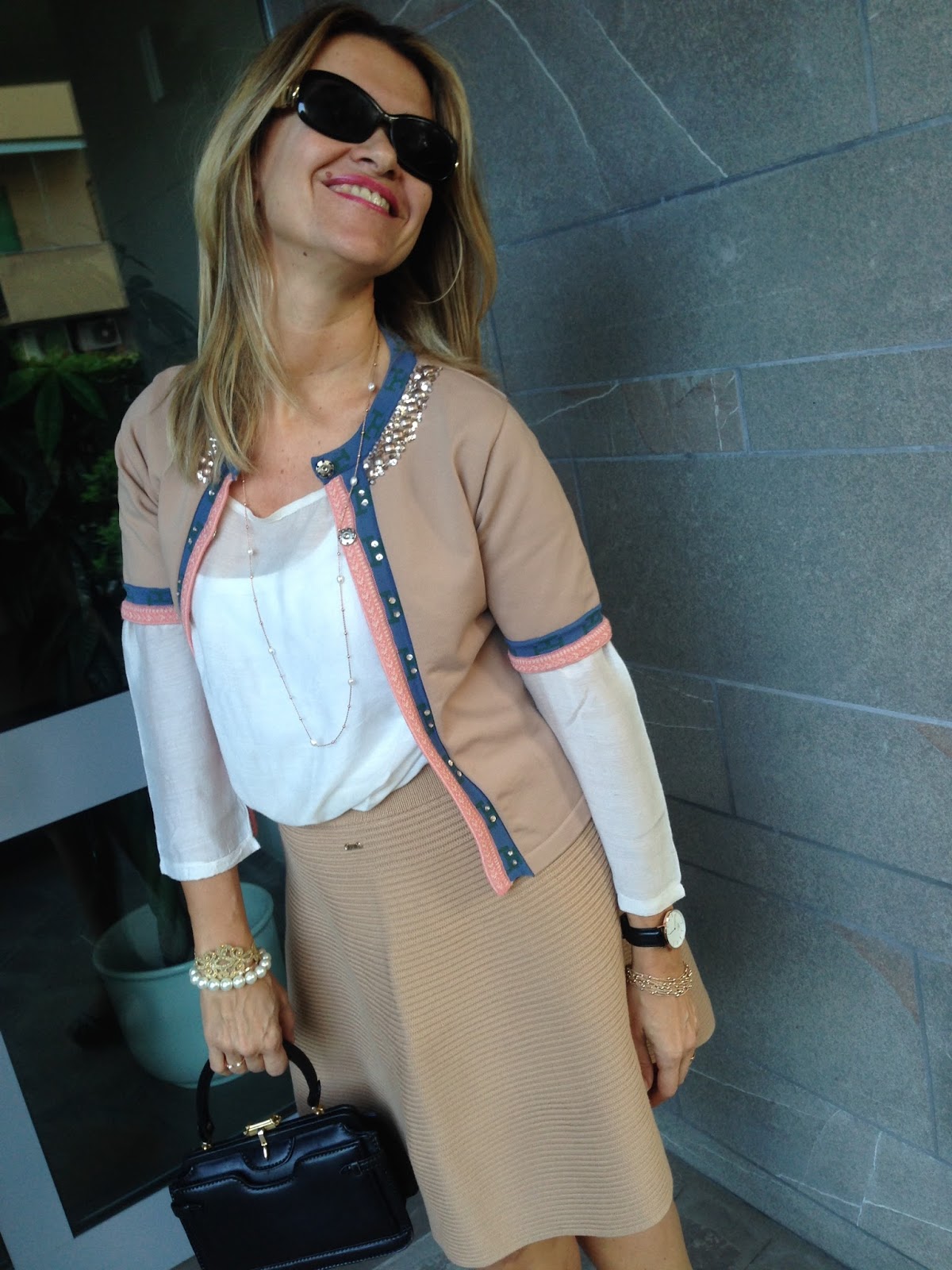 Molto chic questo look ed il beige ti dona tantissimo.