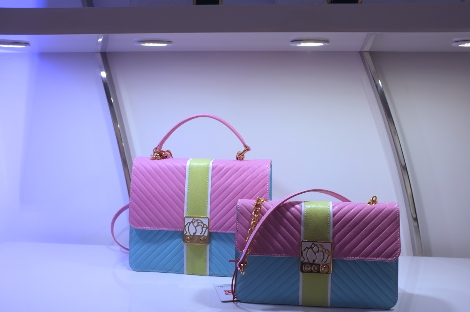 ma la collezione è completa anche di una serie di borse in delicati colori pastello,