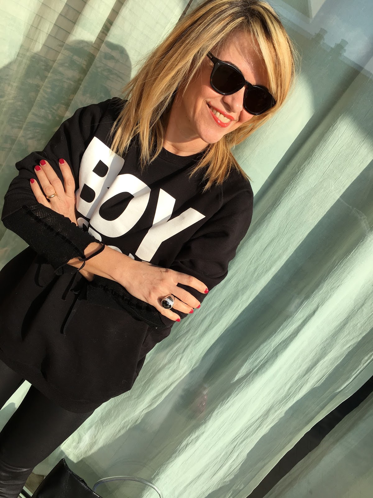 mi piace un sacco il tuo look mia cara!! bellissima la felpa e anche la borsa!