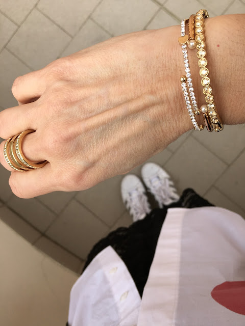Bellissimo questo gioco di sovrapposizioni e stupendi i bracciali Gina.