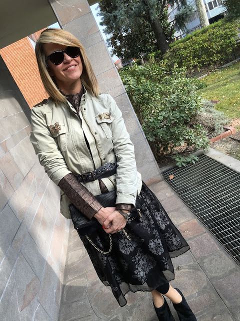 Che bello l'insieme e mi piace molto come hai reso chic e preziosa la sahariana!
