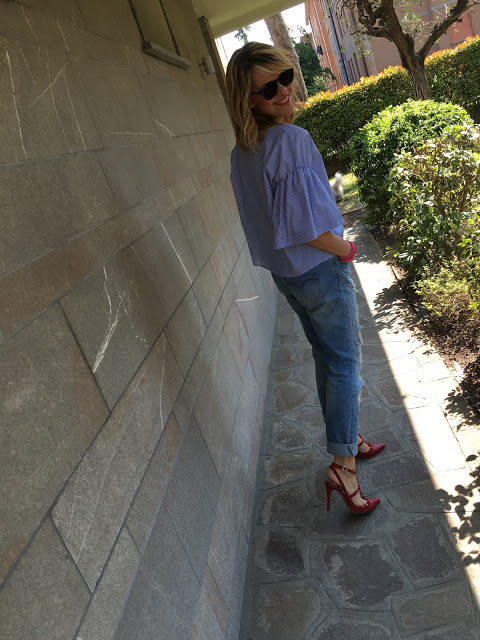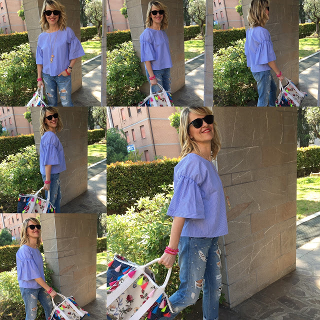 Mi piace tutto di questo look di oggi, la blusa e bella.