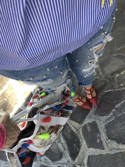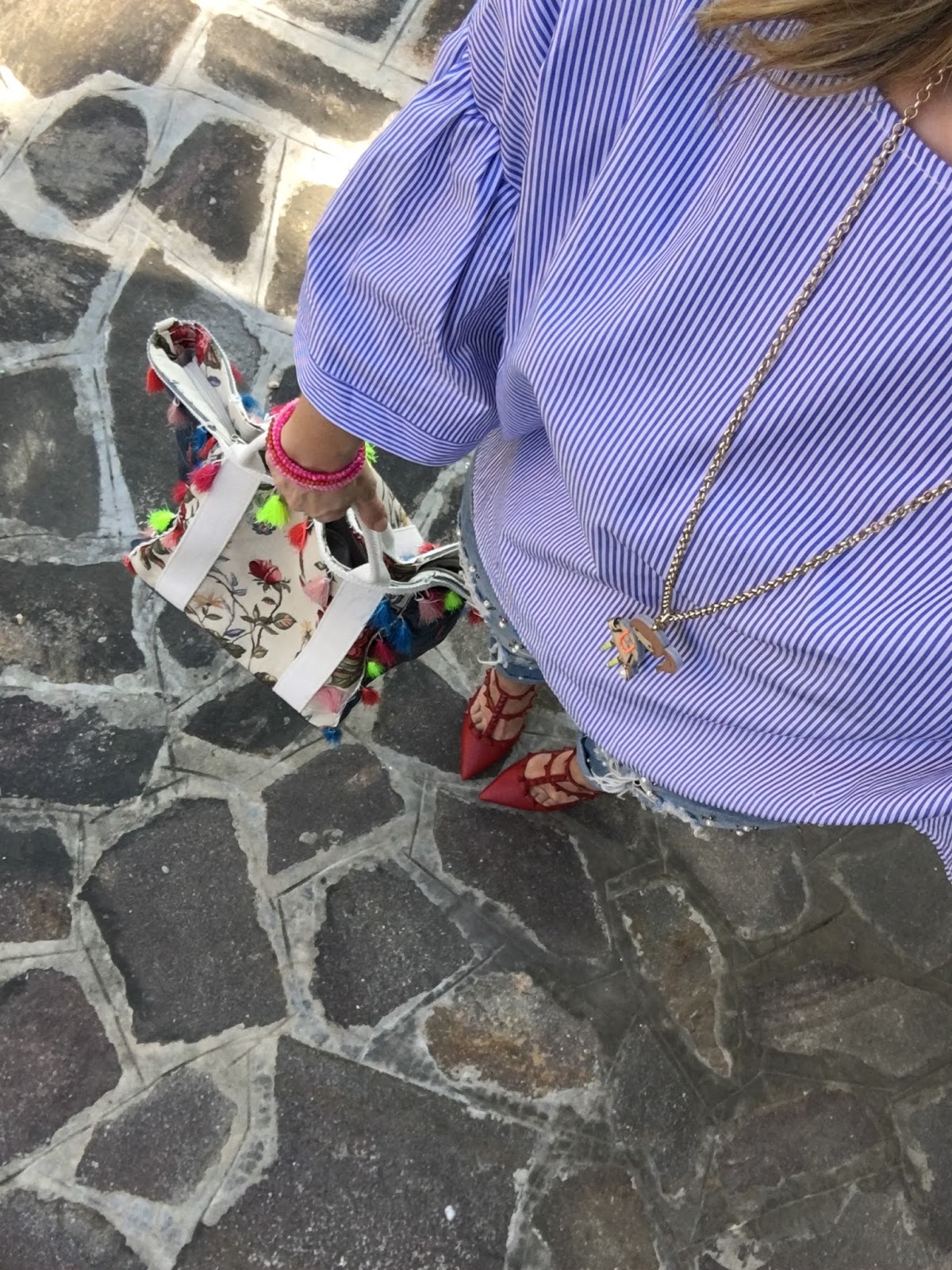 Sai Gina, abbiamo tanti gusti in comune…..la camicia a righe azzurra, la collana con la bambolina….mi piace tutto, i tuoi look sono sempre adorabili!!!!