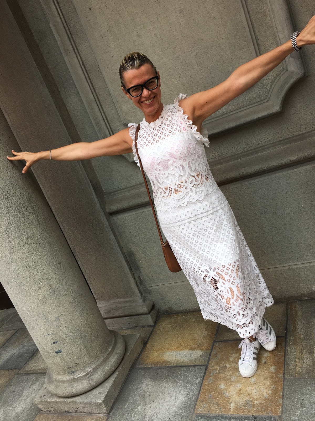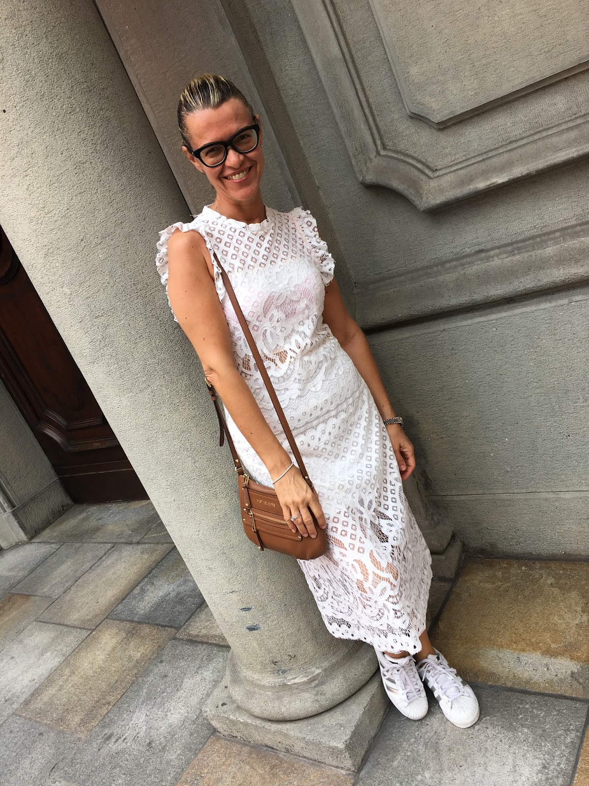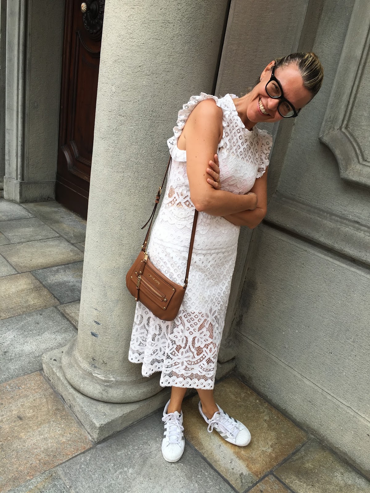 I love this lace dress and how you've added a sporty vibe to the outfit with your trainers! 🙂