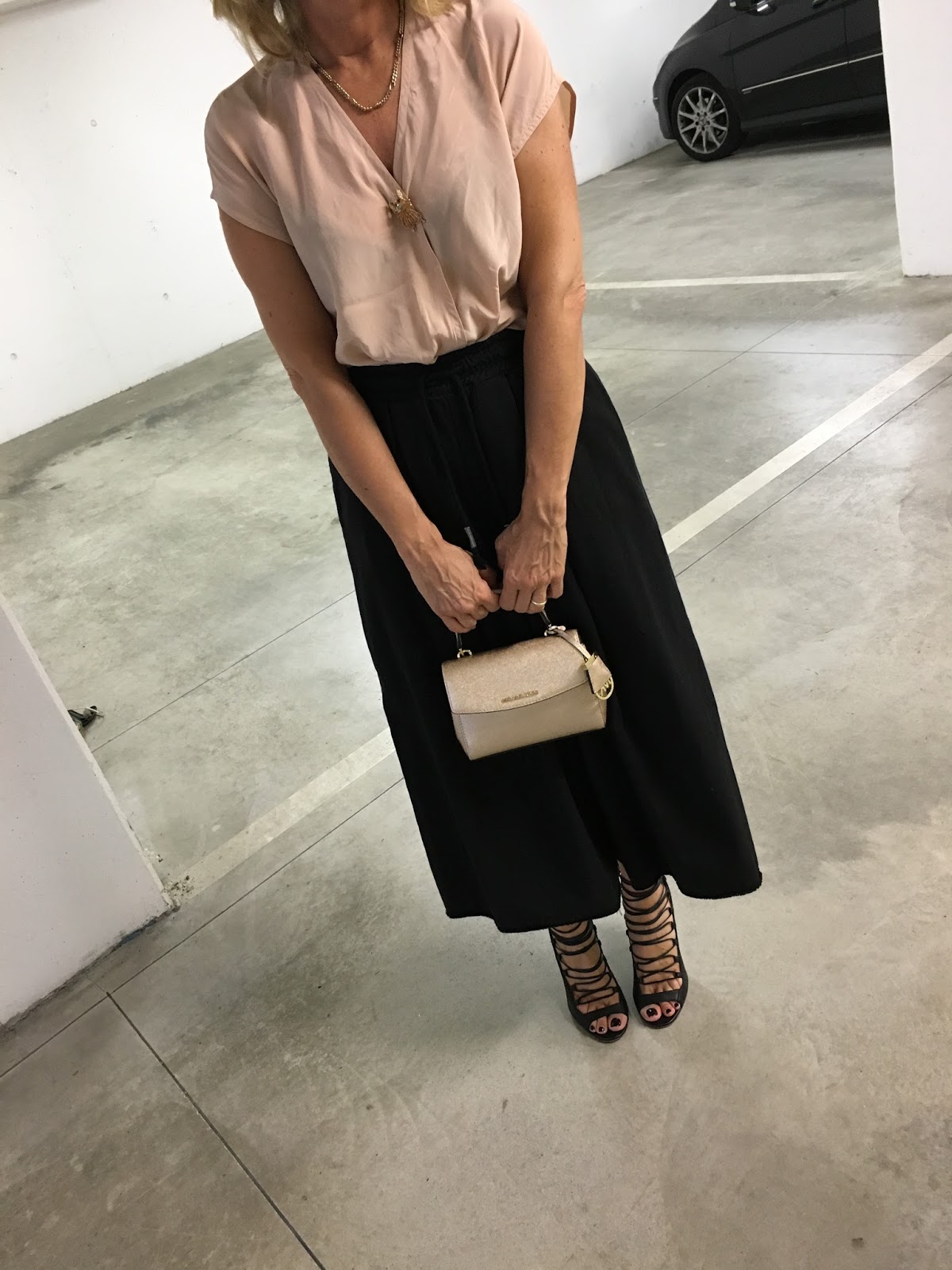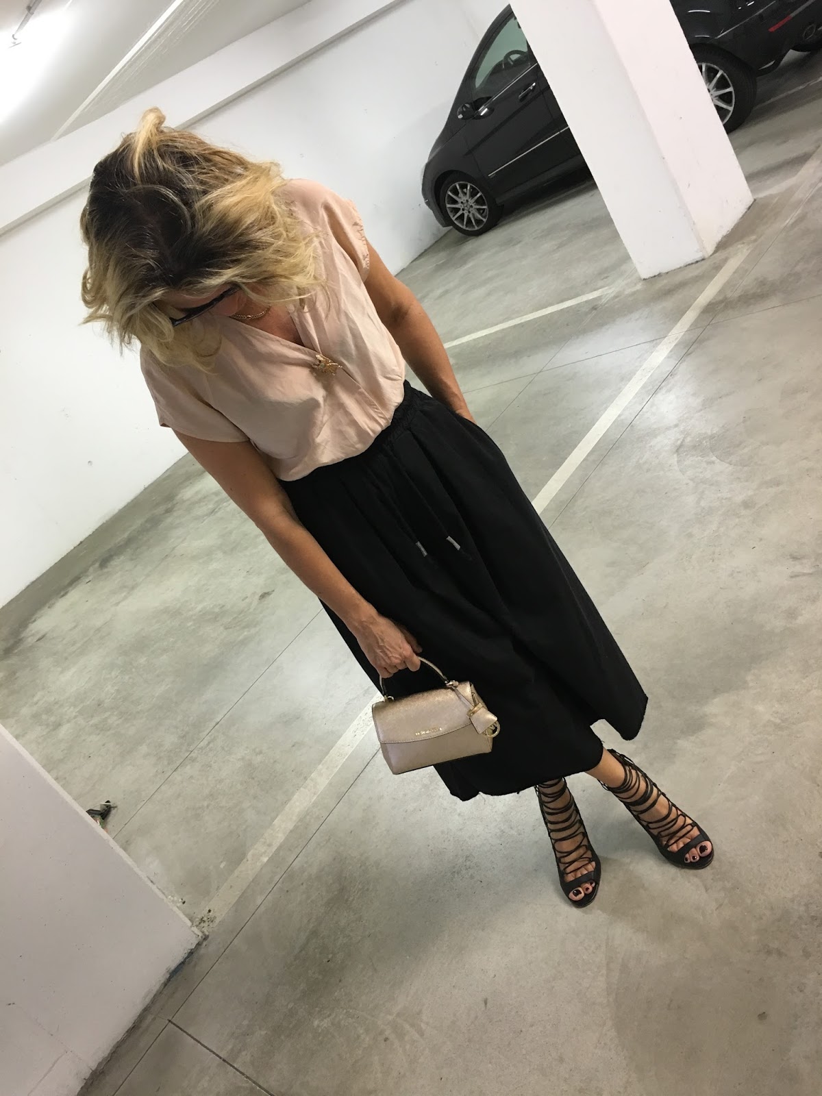 Mi piace il rosa della blusa con il nero…anche Ero rimasta alla gonna pantalone. .