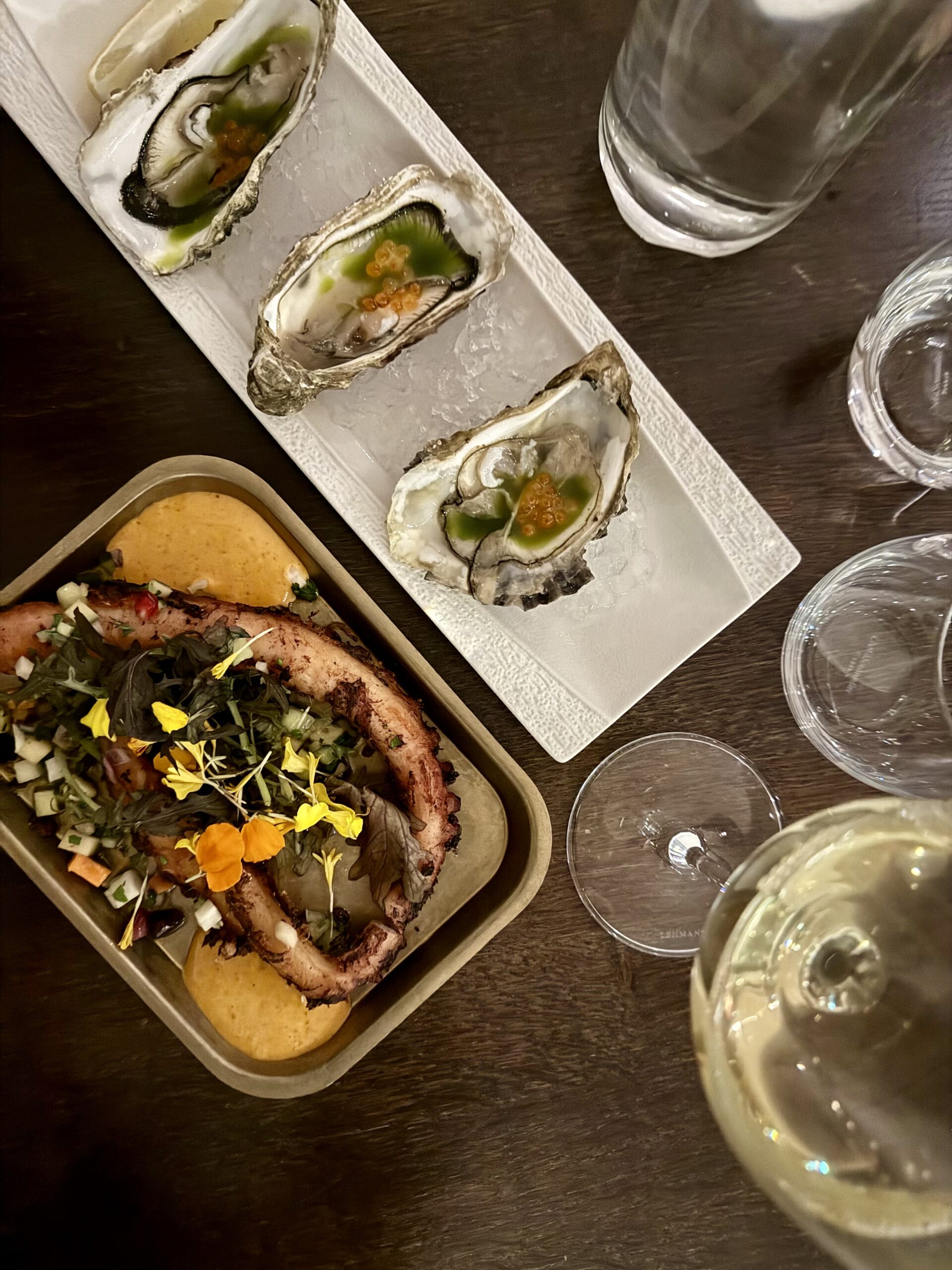 Il menù? Ostriche freschissime, tartare, polpo grigliato con verdure, il tutto accompagnato da bollicine e chiuso con una strepitosa mousse al cioccolato. Una serata davvero indimenticabile.