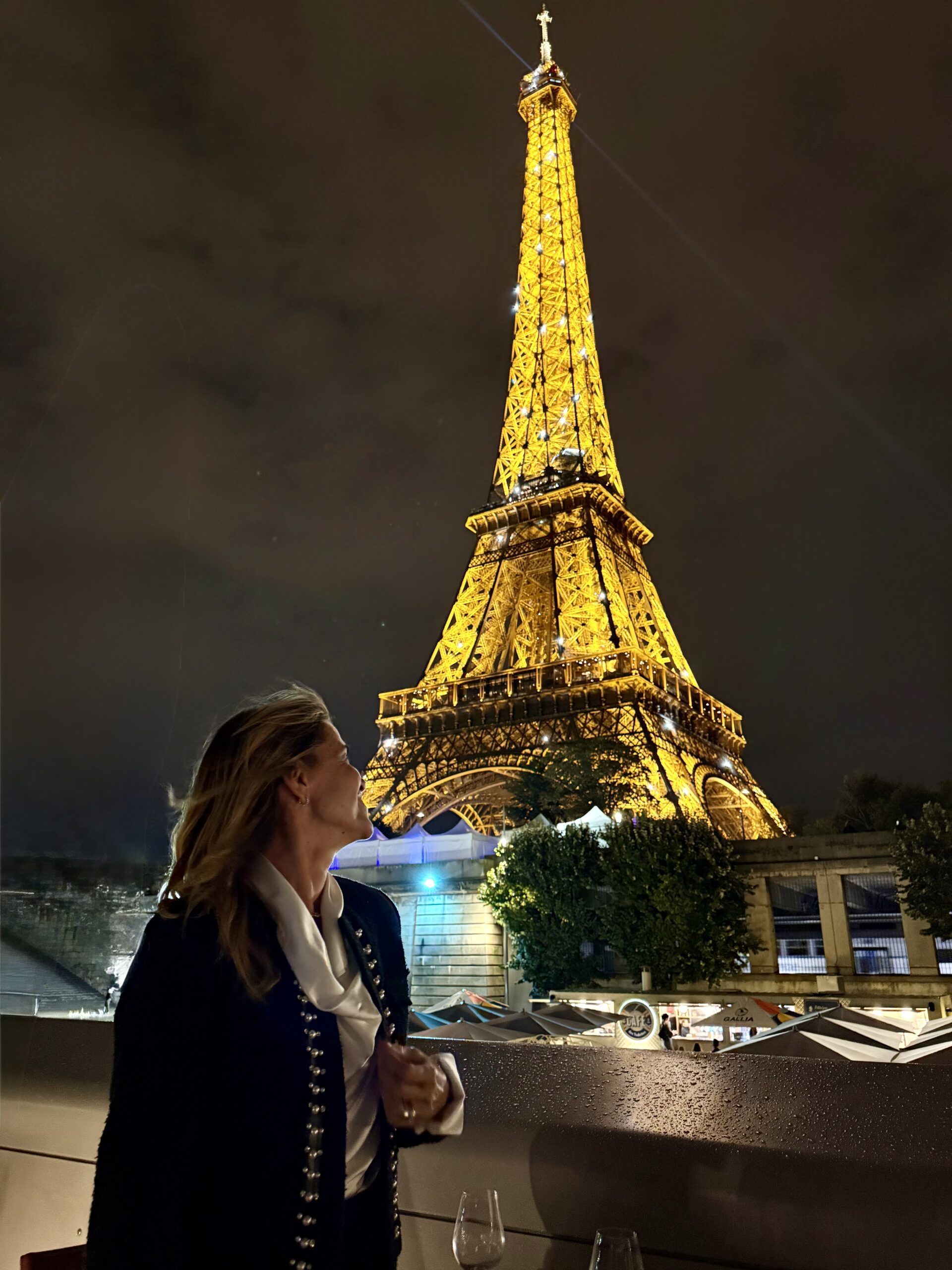 Per l’ultima cena, volevo qualcosa di speciale. E Francette lo è stato: un ristorante galleggiante sulla Senna, con vista Tour Eiffel illuminata.
