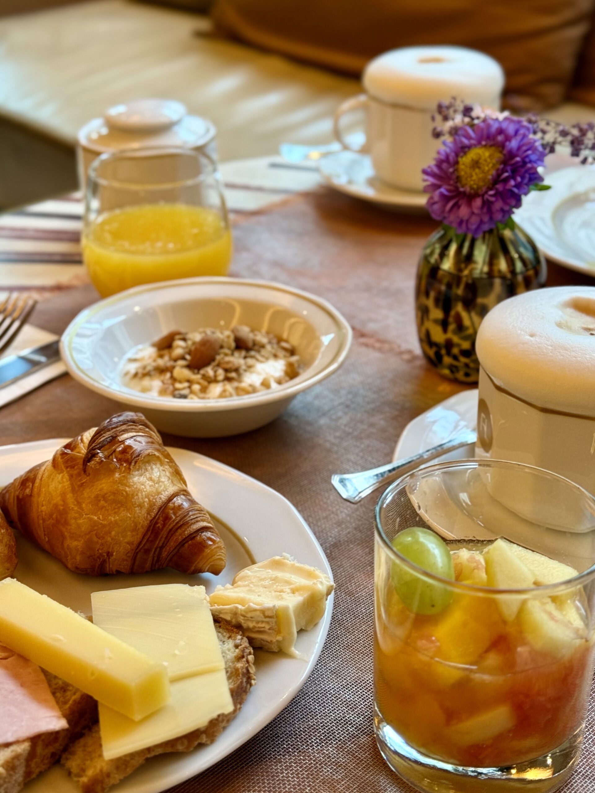 La colazione? Pazzesca. Buffet dolce e salato con croissant fragranti, salumi, formaggi, uova, frutta fresca e ogni tipo di leccornia francese.