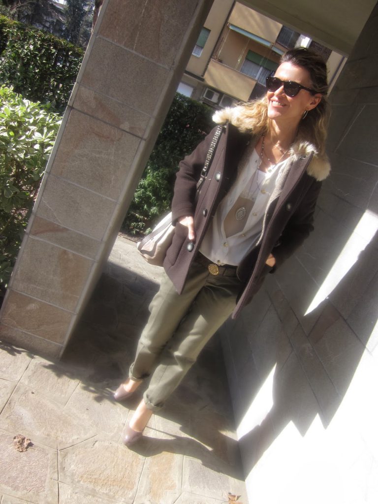 il tempo è ancora brutto …. niente foto all’aperto….. vabbè il look mi piace tanto e ve lo propongo volentieri…. ho abbinato un gilet in pelliccia ad una…