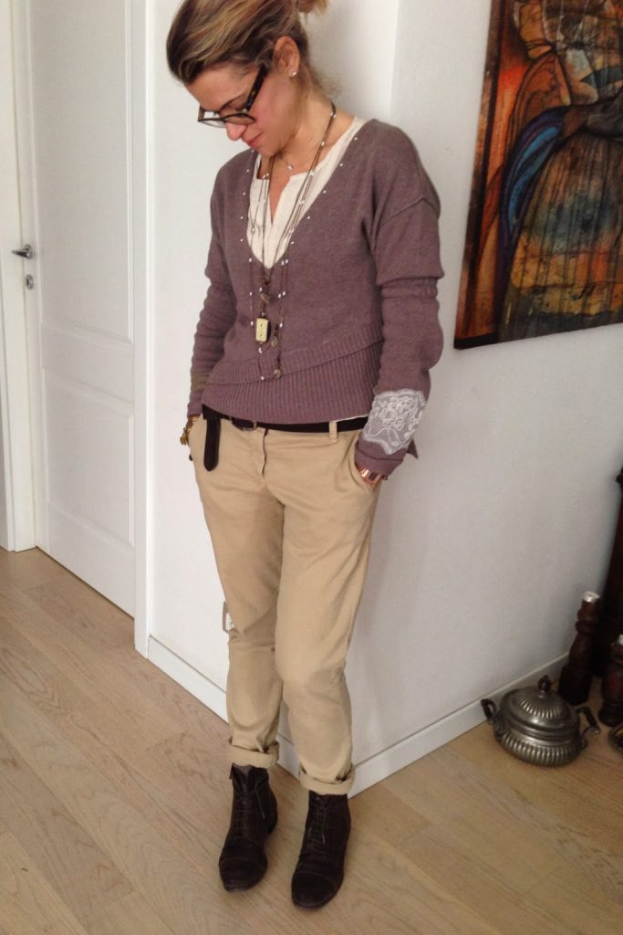 oggi resto in ufficio tutto il giorno….. …………quindi look comodo senza rinunciare allo stile……….. scelgo un pull dallo scollo a V profondo da abbinare ad una blusa con…
